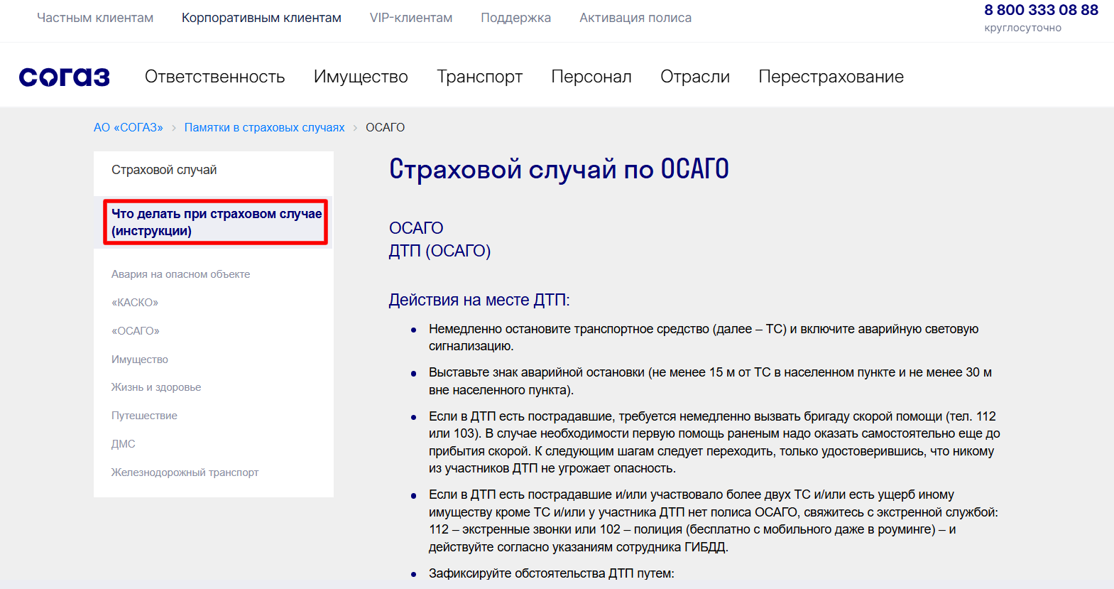 Полный алгоритм действий при дорожно-транспортном происшествии размещен на сайте СОГАЗ: https://www.sogaz.ru/claim/osago/